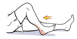 Slide the heel of your affected leg along the floor toward you, bending your knee and keeping your foot flexed. Move it as close to you as you comfortably can.