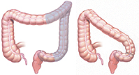 Right hemicolectomy Part or all of the right side (ascending) colon is removed. The remaining colon is then reconnected to the small intestine.